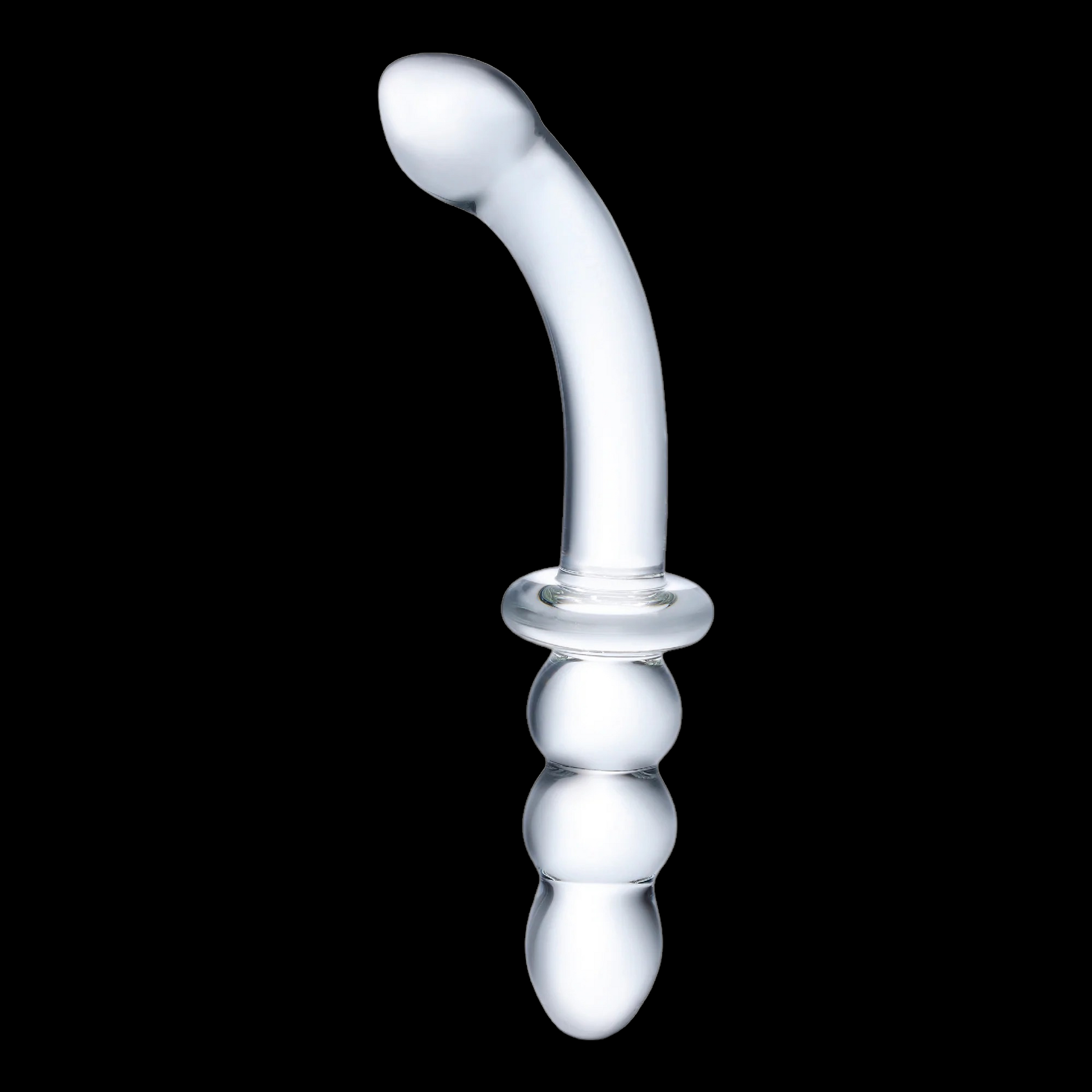 Get ready for a sleek, rock-hard sexual experience. This realistically shaped glass G-spot dildo offers 7â in length thats topped with deliciously ribbed tip. The shaft is expertly crafted with a smooth curve thats angled to stimulate the G-spot.